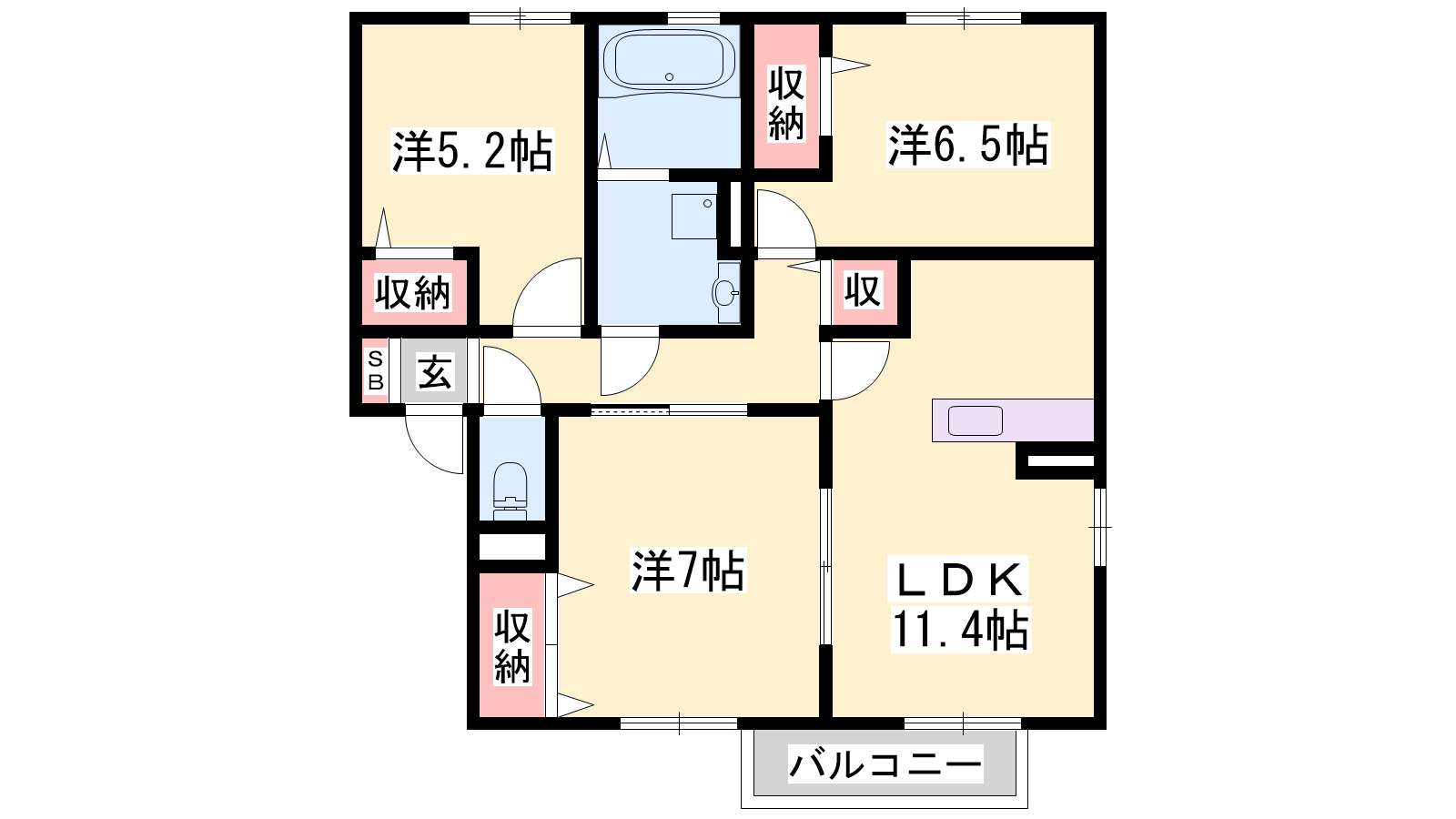 - LDK11.4帖、洋室7帖、洋室6.5帖、洋室5.2帖