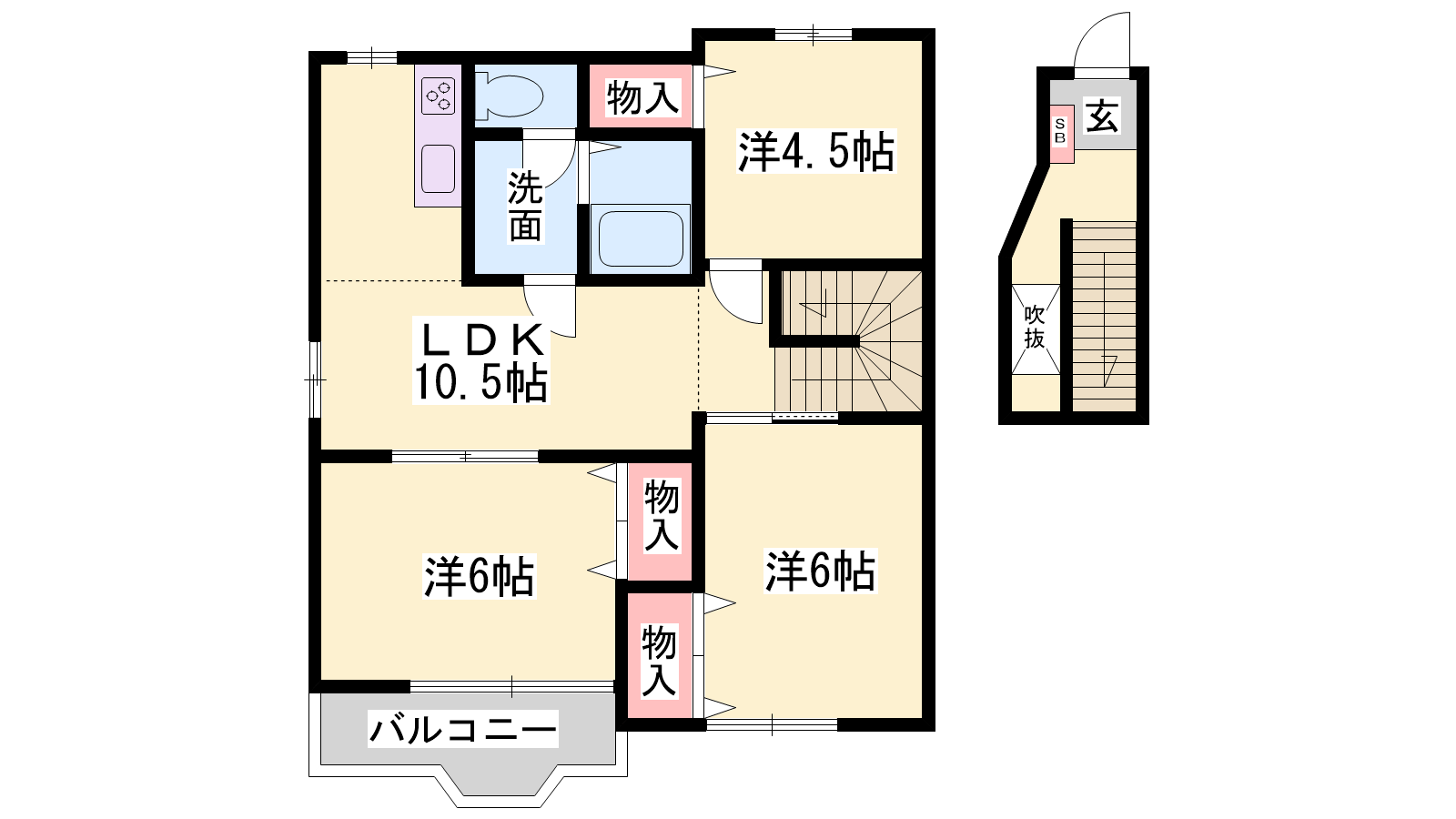 - LDK10.5帖、洋室6帖、洋室6帖、洋室4.5帖