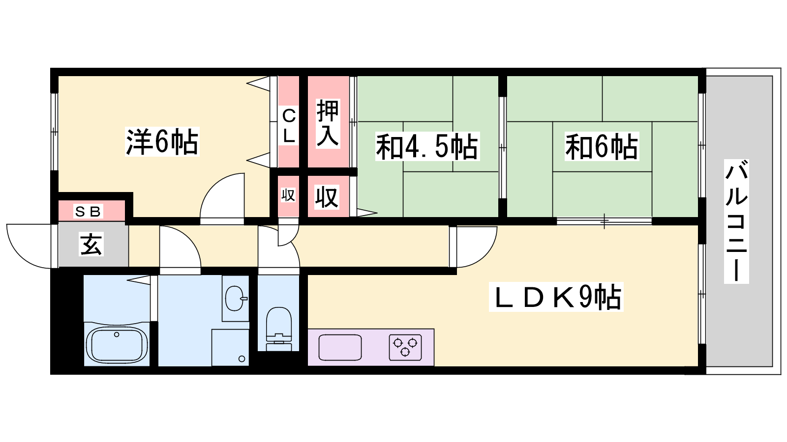 - LDK9帖、洋室6帖、和室6帖、和室4.5帖