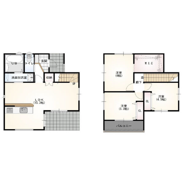 - LDK15.3帖、洋室6帖、洋室4.5帖、洋室5.3帖