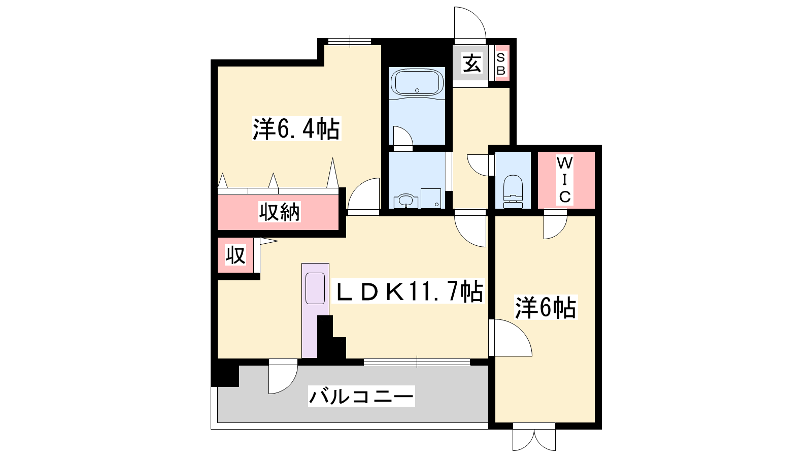 - LDK11.7帖、洋室6.4帖、洋室6帖