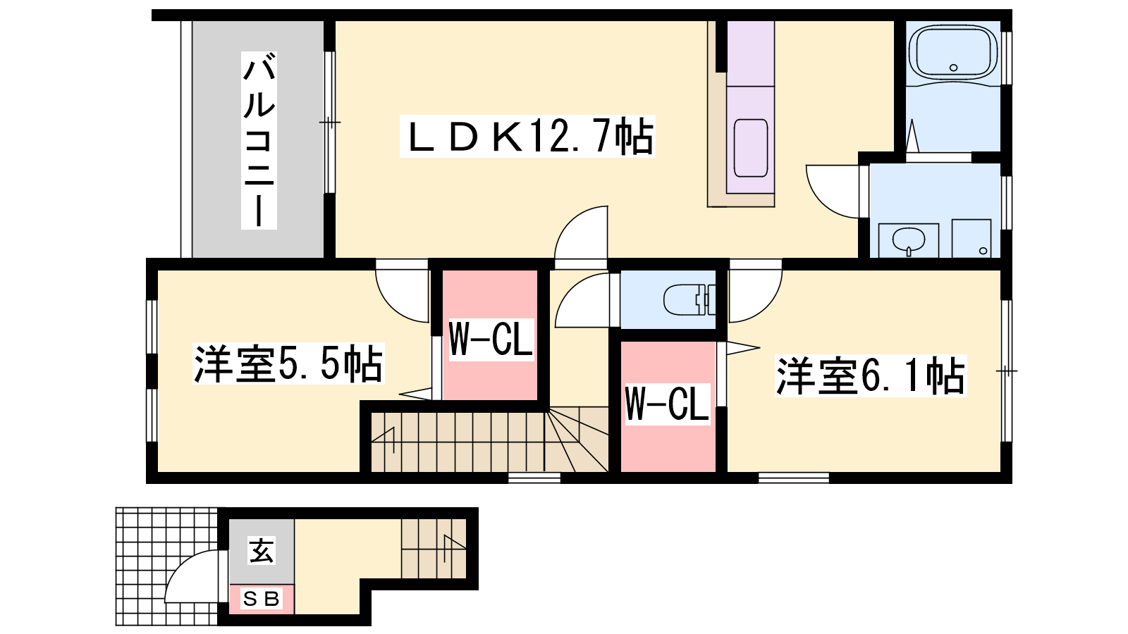 - LDK12.7帖、洋室6.1帖、洋室5.5帖