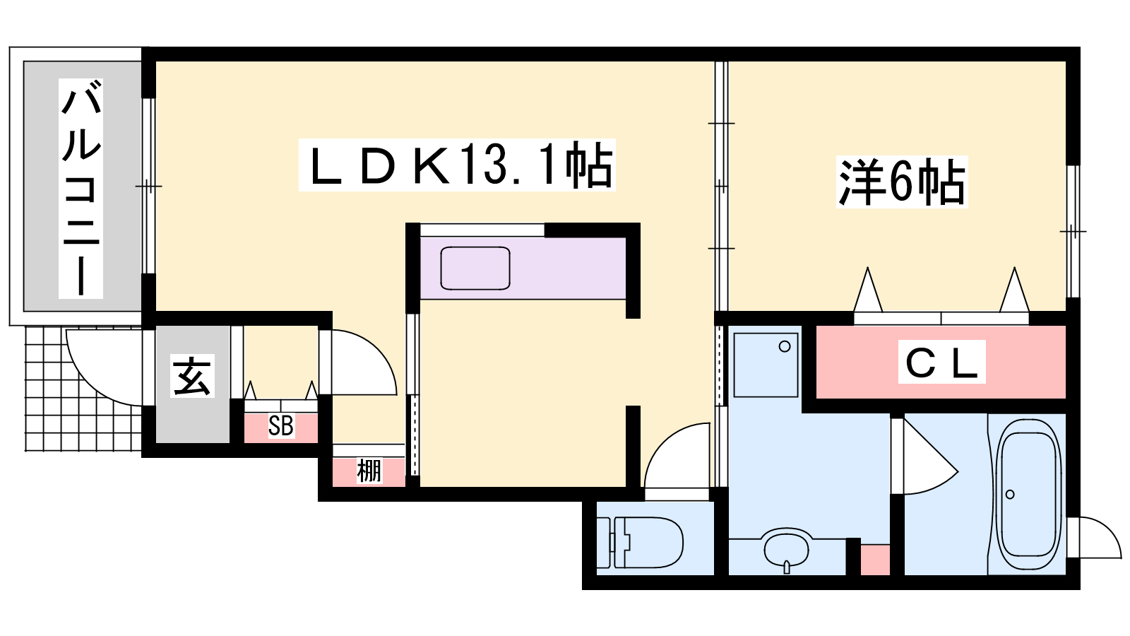 - LDK13.1帖、洋室6帖