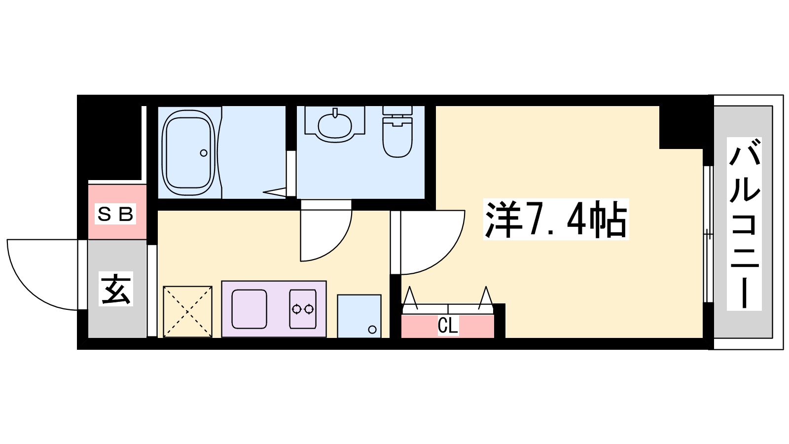 - K3帖、洋室7.4帖