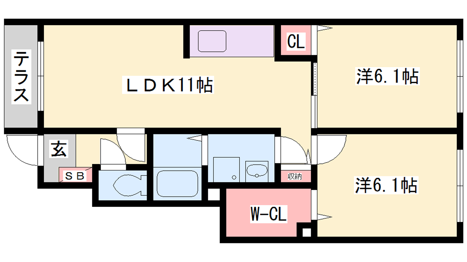 - LDK11帖、洋室6.1帖、洋室6.1帖