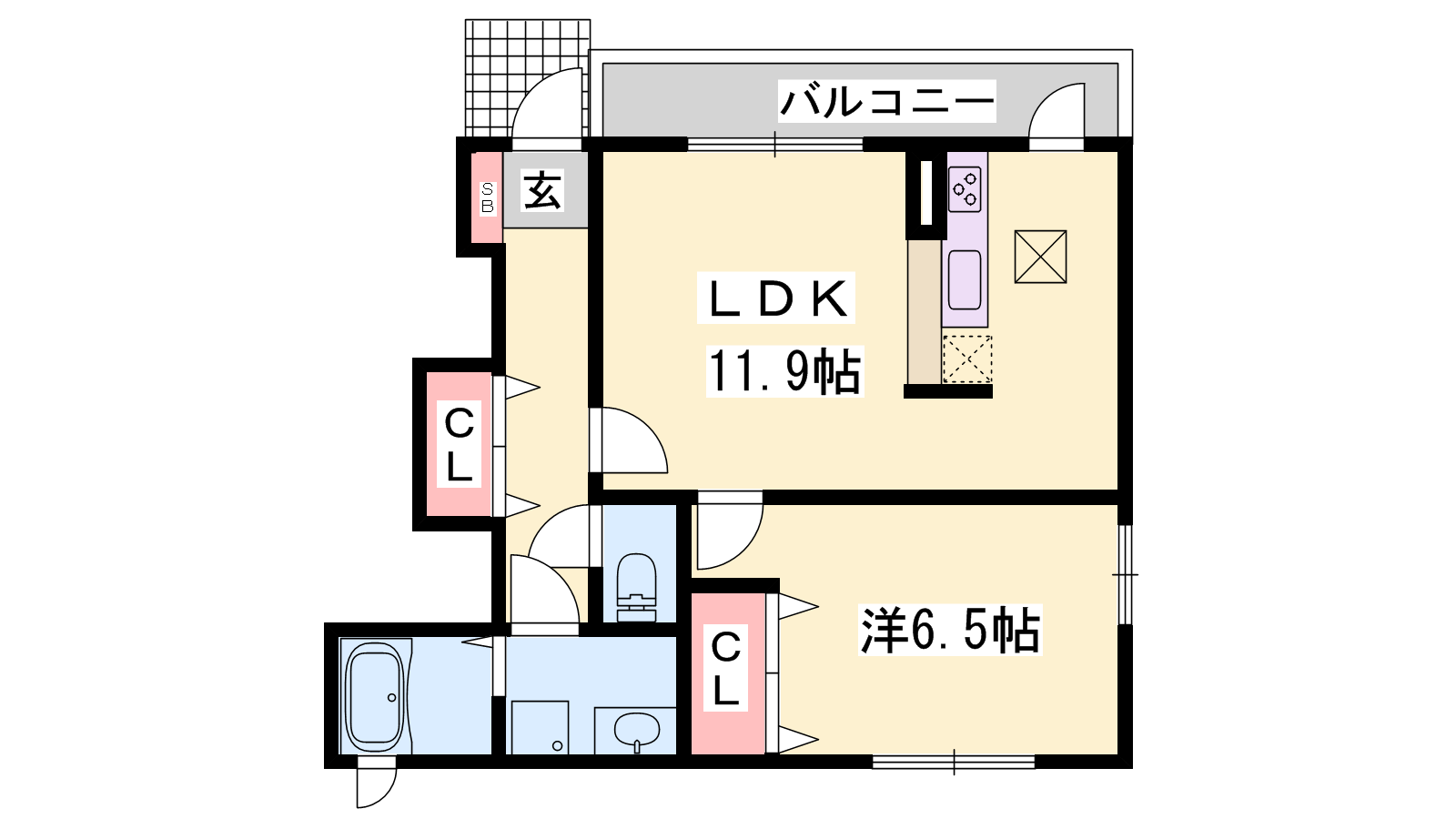 - LDK11.9帖、洋室6.5帖