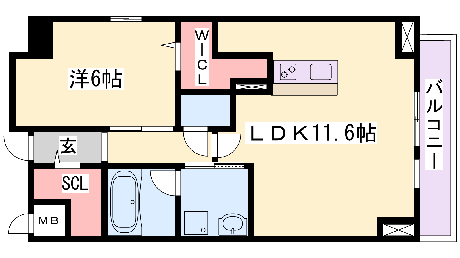 - LDK11.6帖、洋室6帖