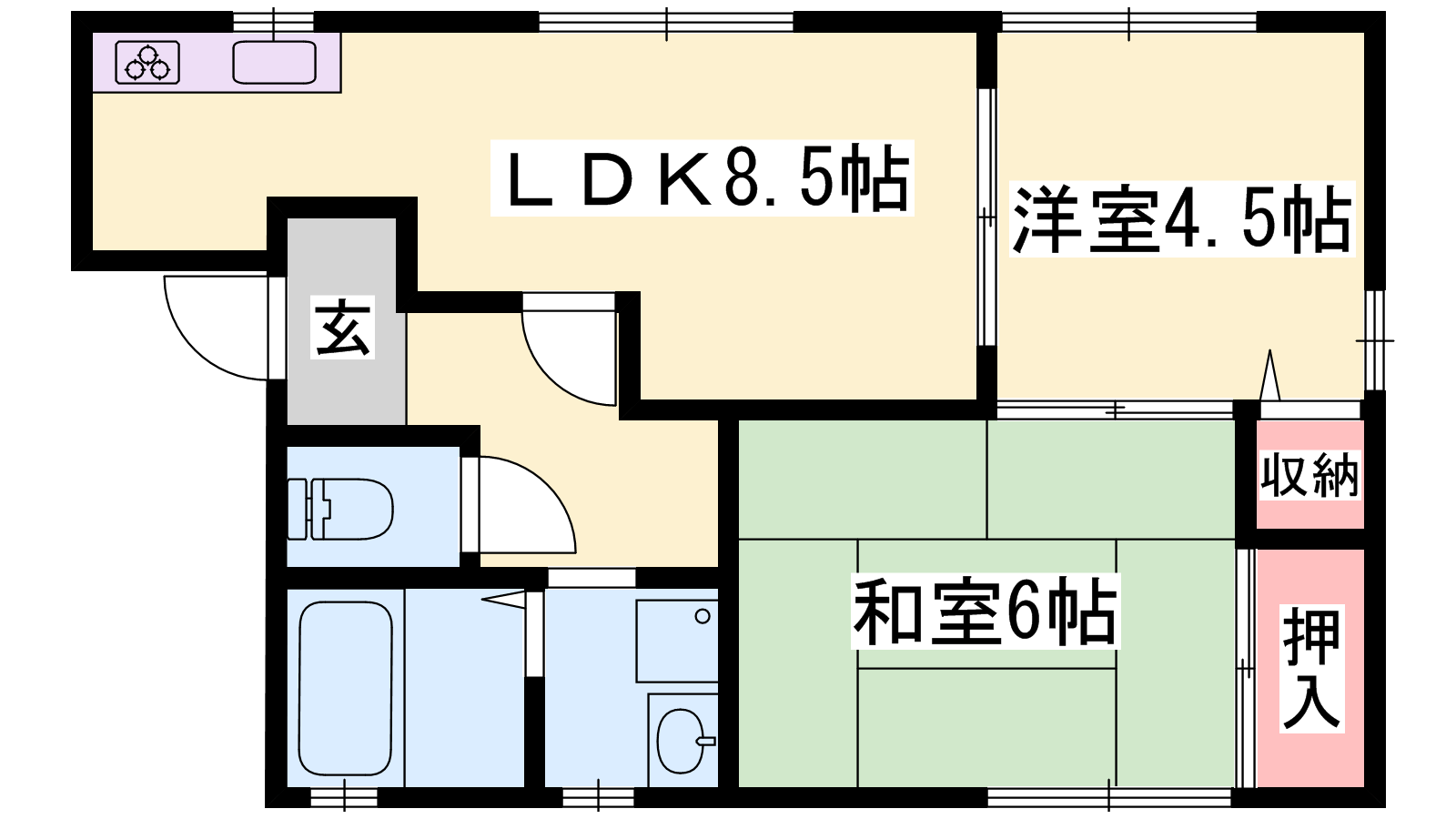 - LDK8.5帖、洋室4.5帖、和室6帖