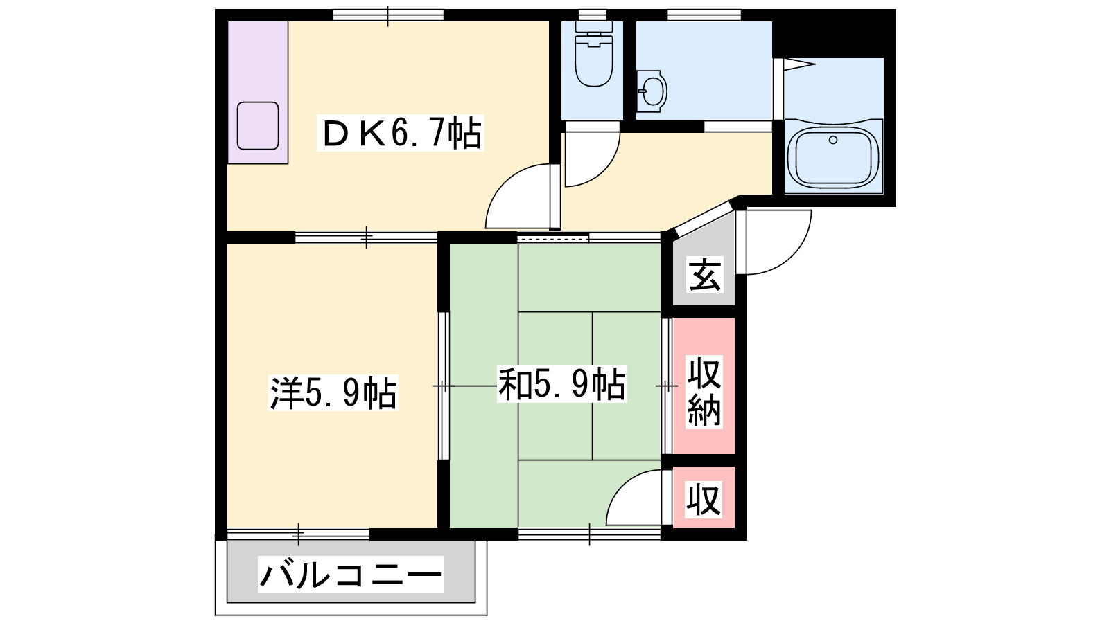 - DK6.7帖、洋室5.9帖、和室5.9帖