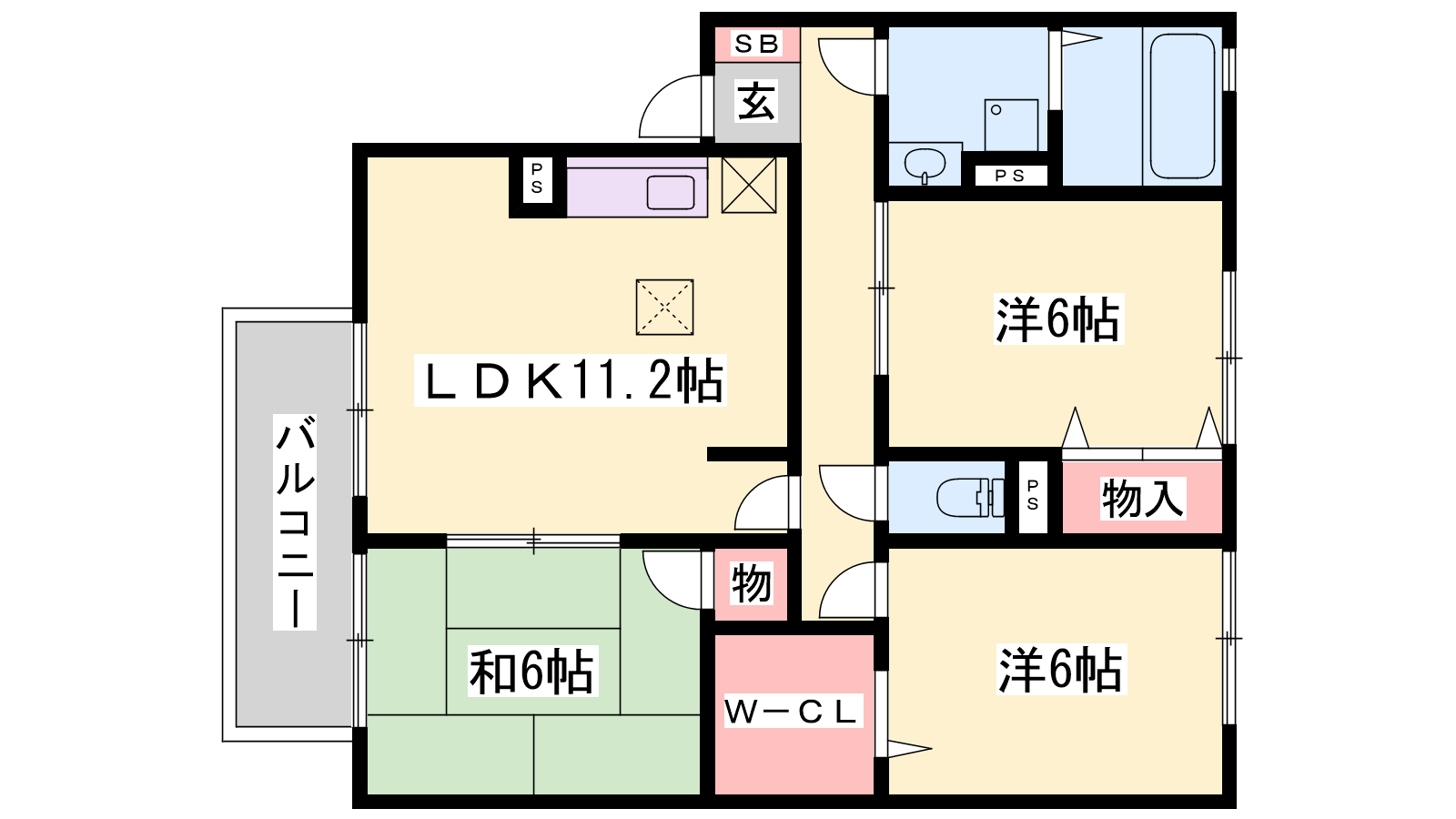 - LDK11.2帖、洋室6帖、洋室6帖、和室6帖