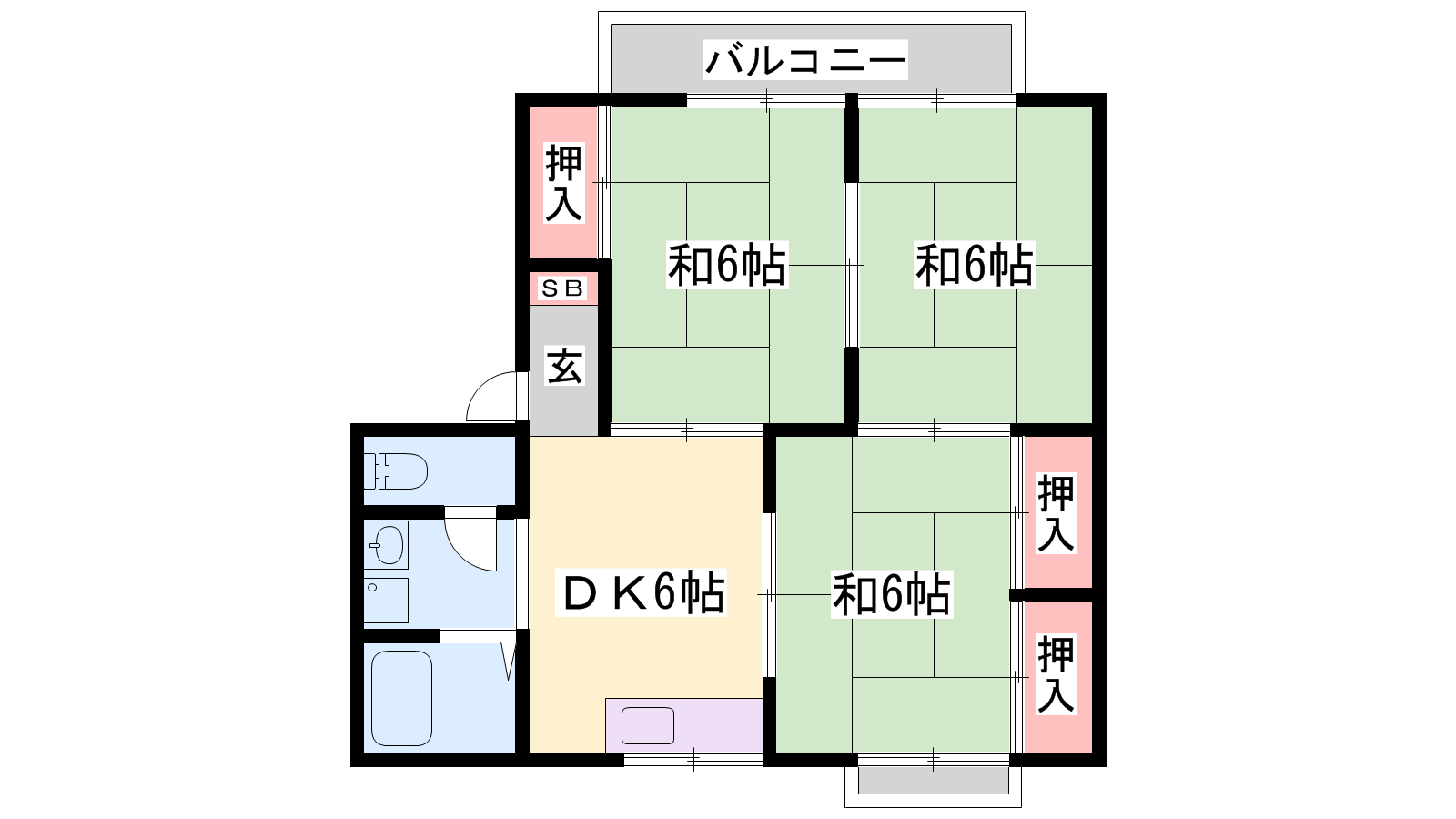 - DK6帖、和室6帖、和室6帖、和室6帖