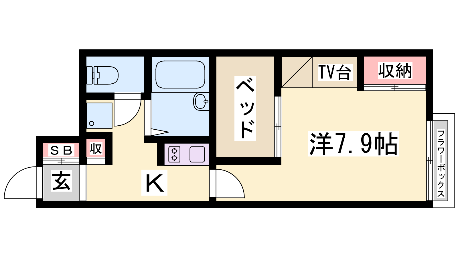- K2帖、洋室7.9帖
