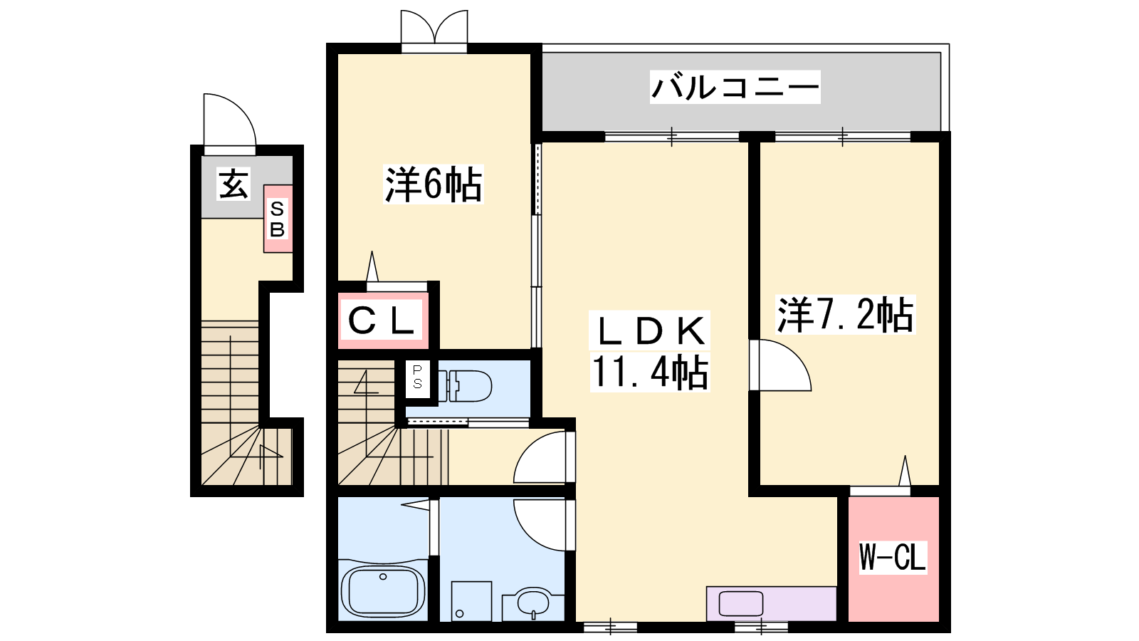 - LDK11.4帖、洋室7.2帖、洋室6帖