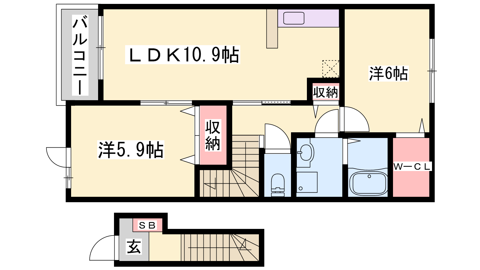 - LDK10.9帖、洋室6帖、洋室5.9帖