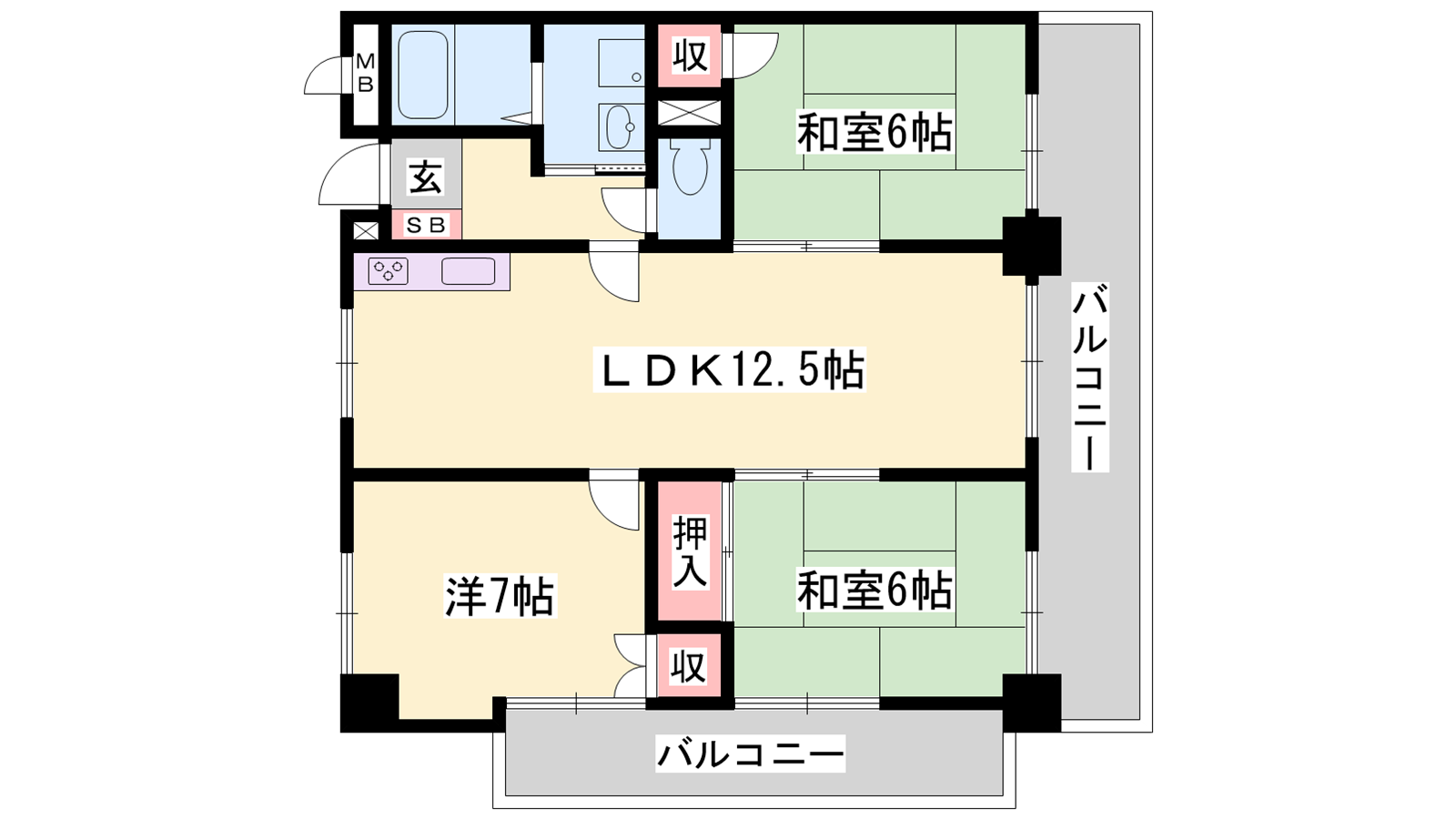 - LDK12.5帖、和室6帖、和室6帖、洋室7帖