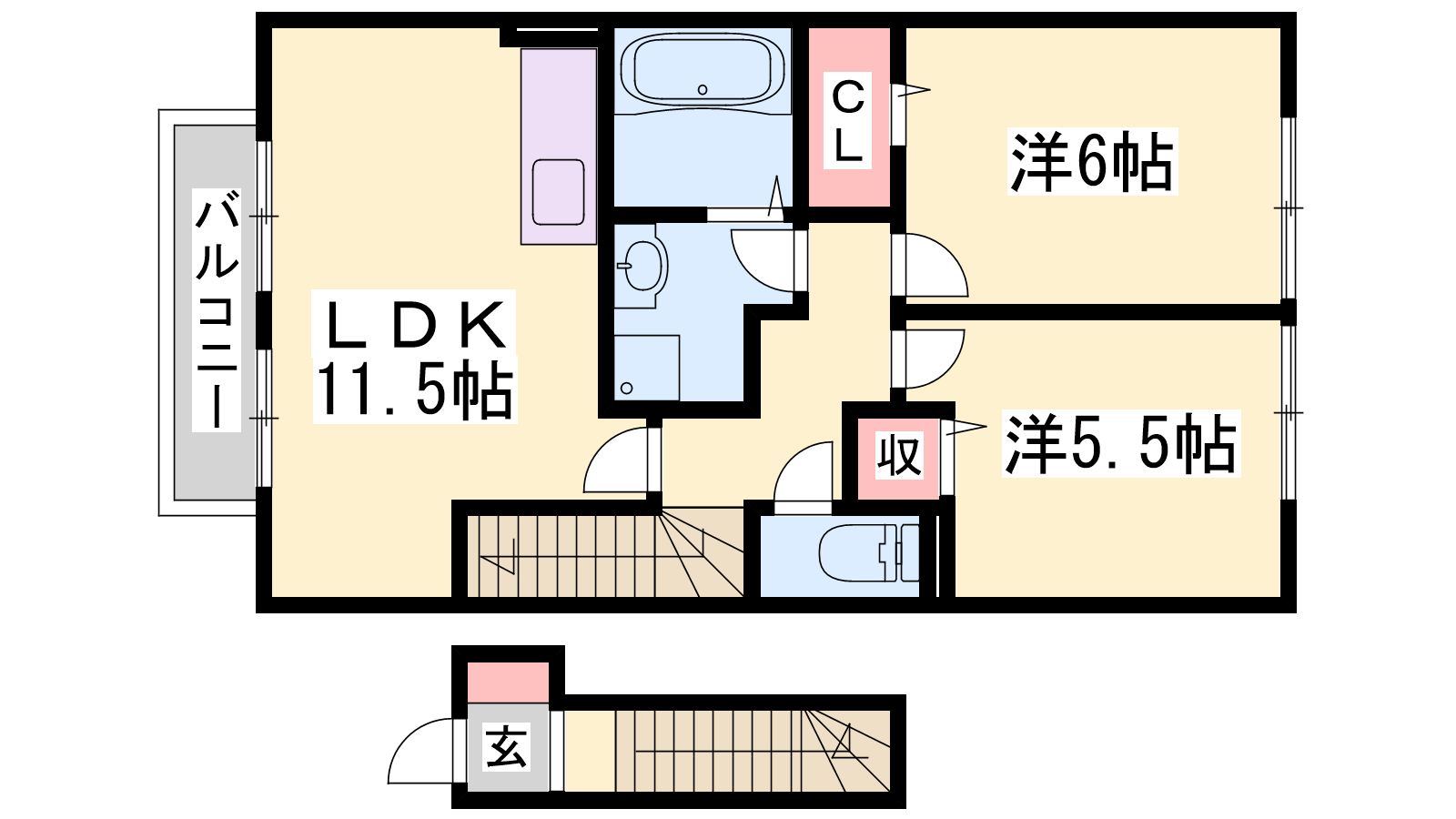 - LDK11.5帖、洋室6帖、洋室5.5帖