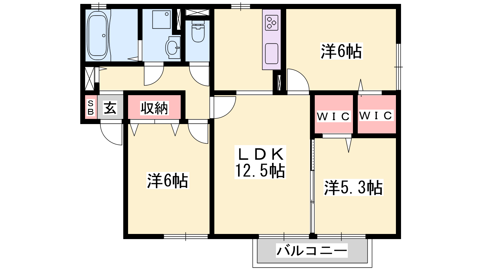 - LDK12.5帖、洋室6帖、洋室6帖、洋室5.3帖