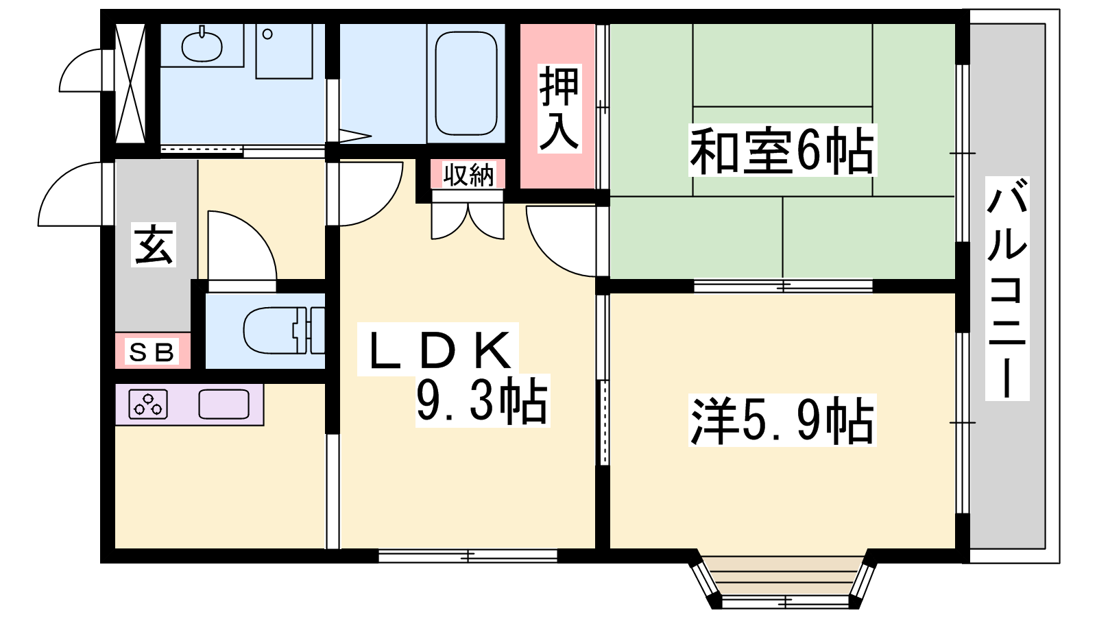 - LDK9.3帖、洋室5.9帖、和室6帖