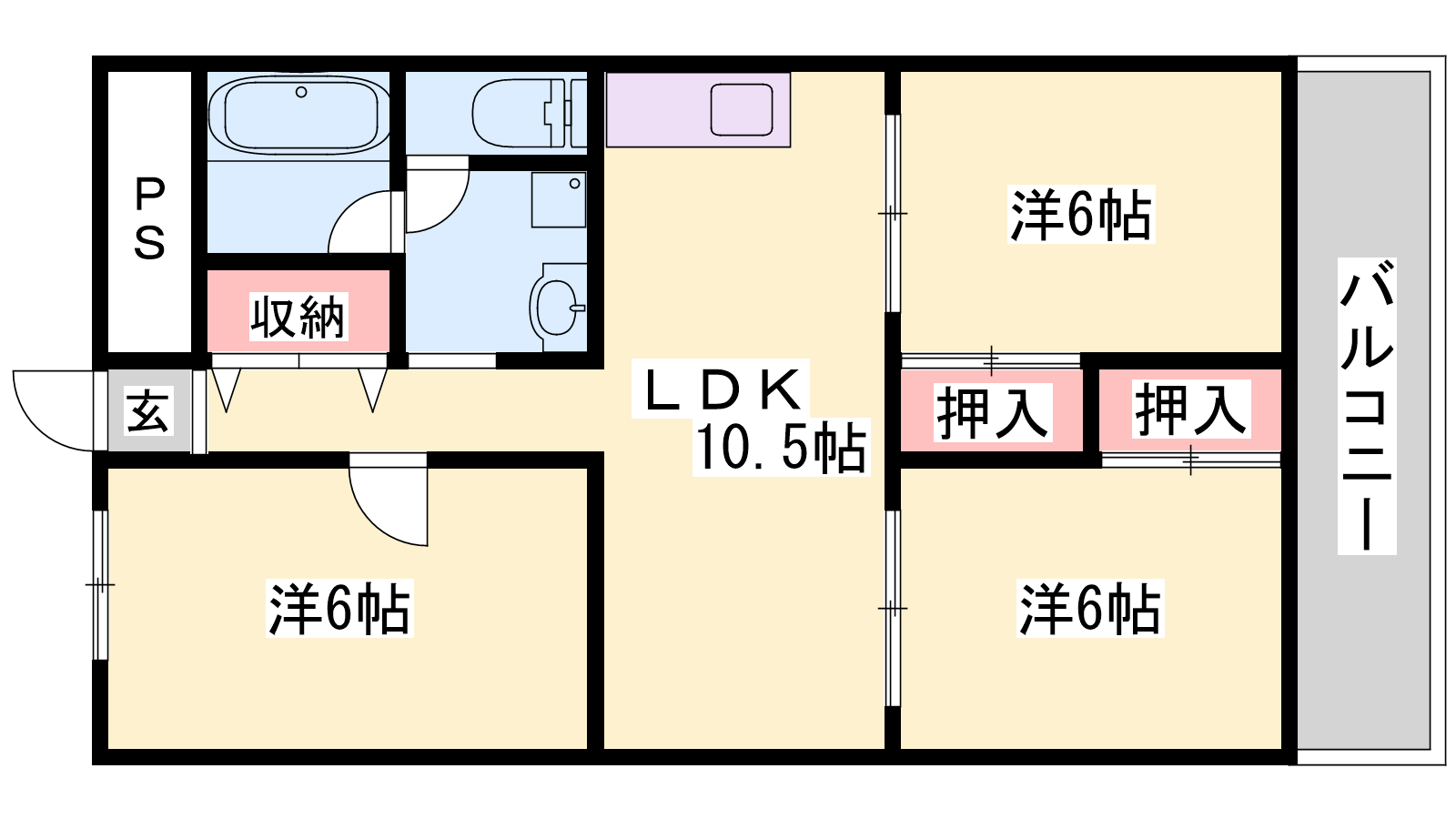 - LDK10.5帖、洋室6帖、洋室6帖、洋室6帖