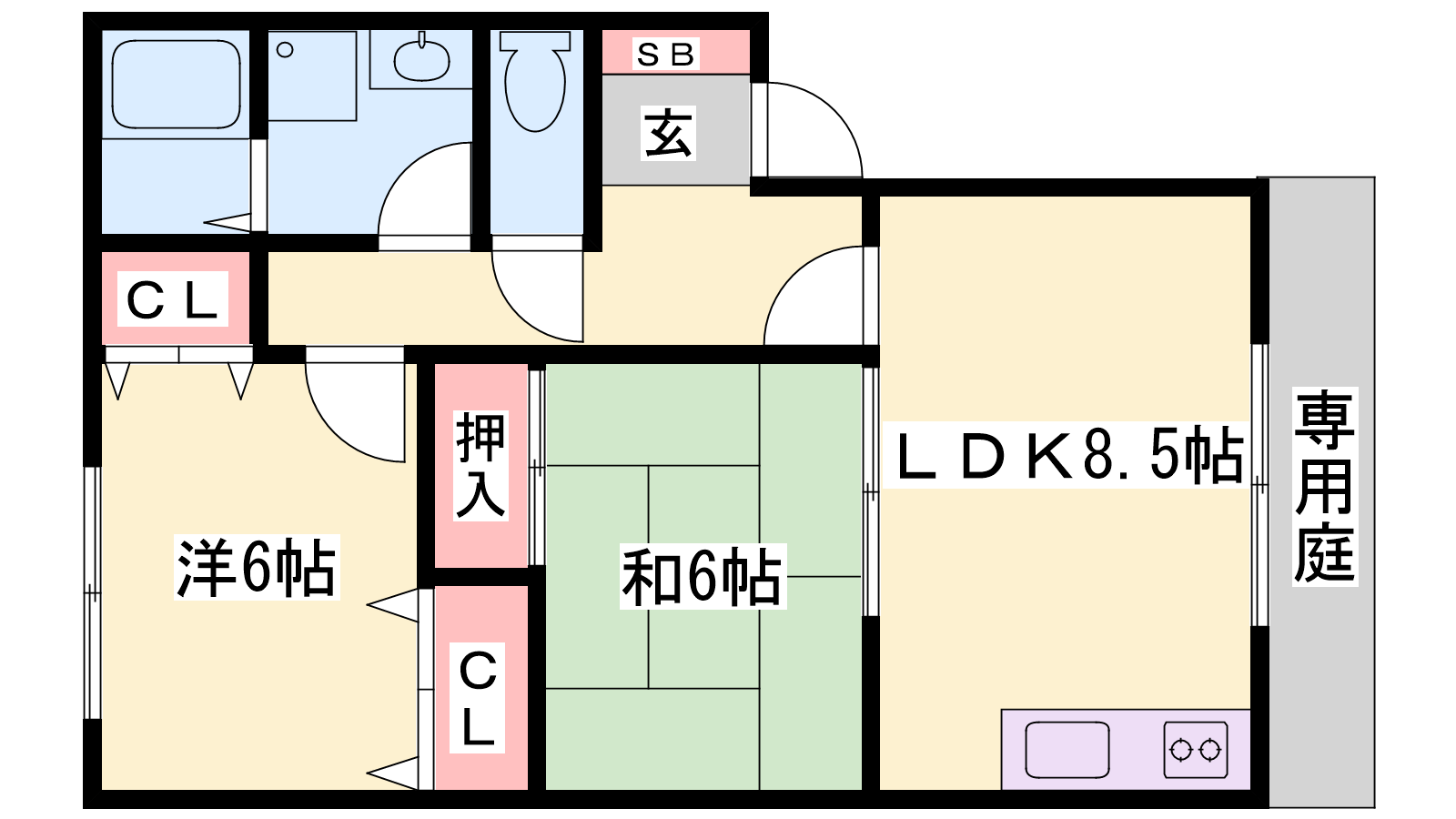 - LDK8.5帖、洋室6帖、和室6帖