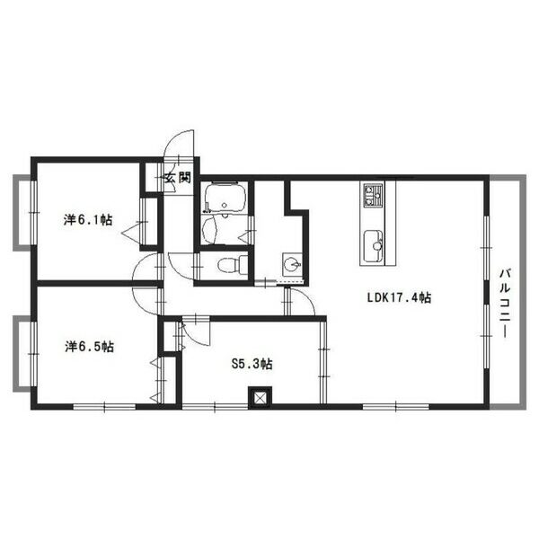 - LDK17.4帖、S5.3帖、洋室6.1帖、洋室6.5帖