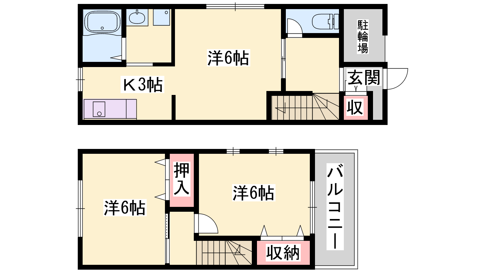 - DK8帖、洋室6帖、洋室6帖