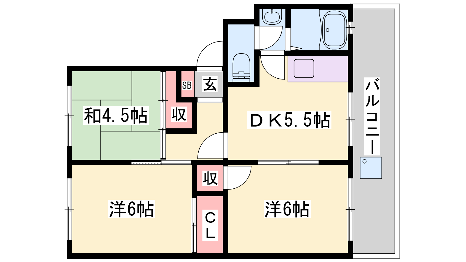 - DK5.5帖、洋室6帖、洋室6帖、和室4.5帖