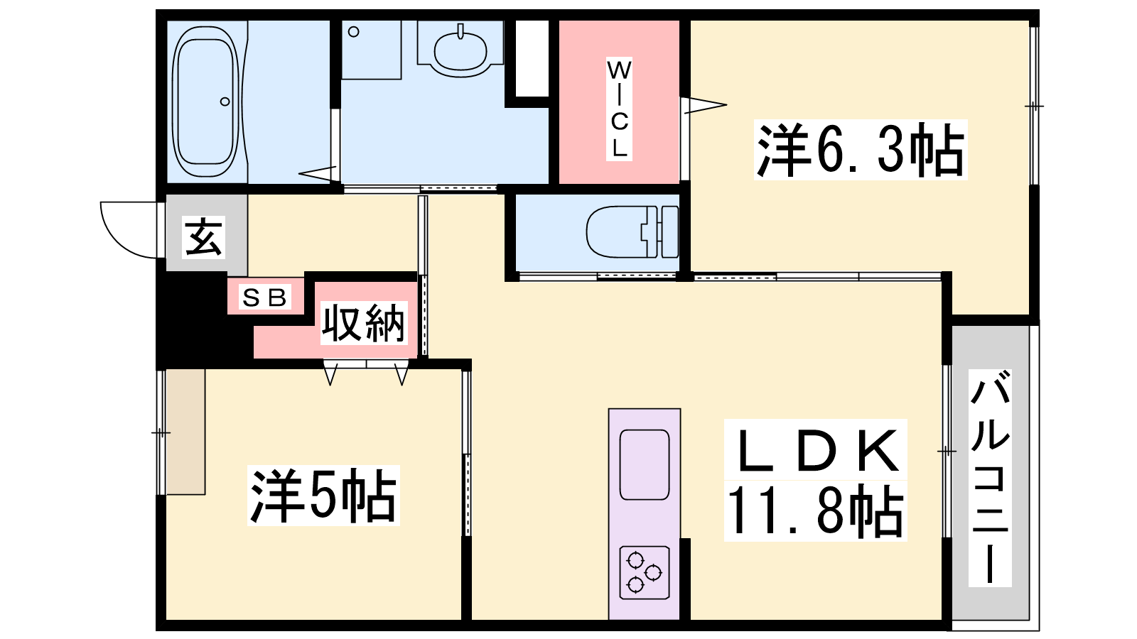 - LDK11.8帖、洋室5帖、洋室6.3帖