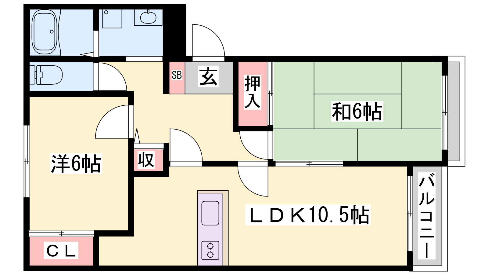 - LDK10.5帖、洋室6帖、和室6帖