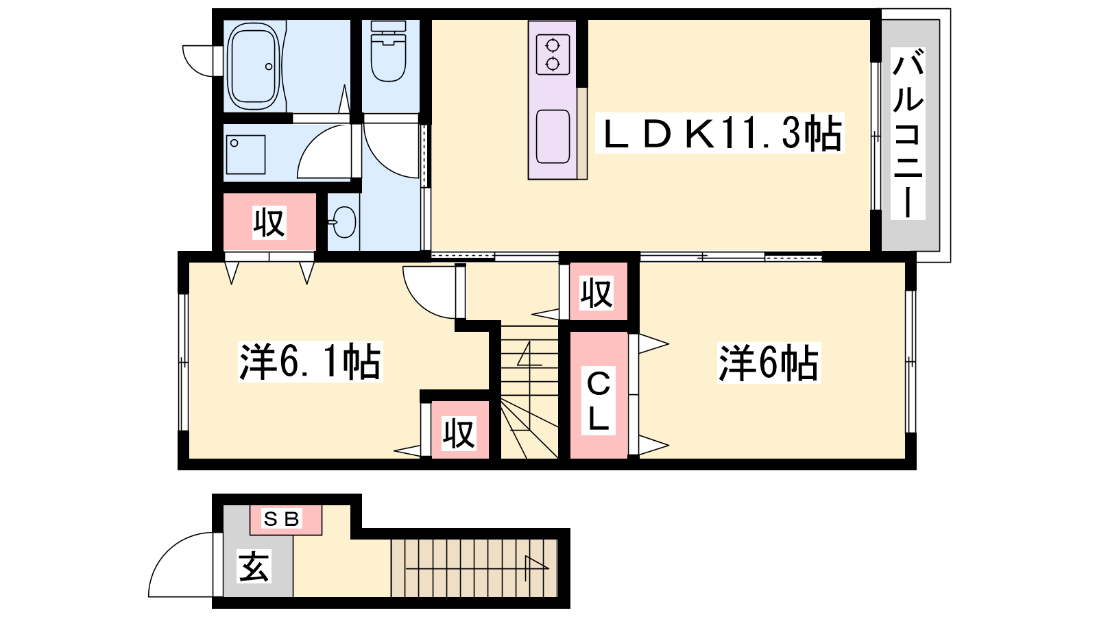 - LDK11.3帖、洋室6.1帖、洋室6帖