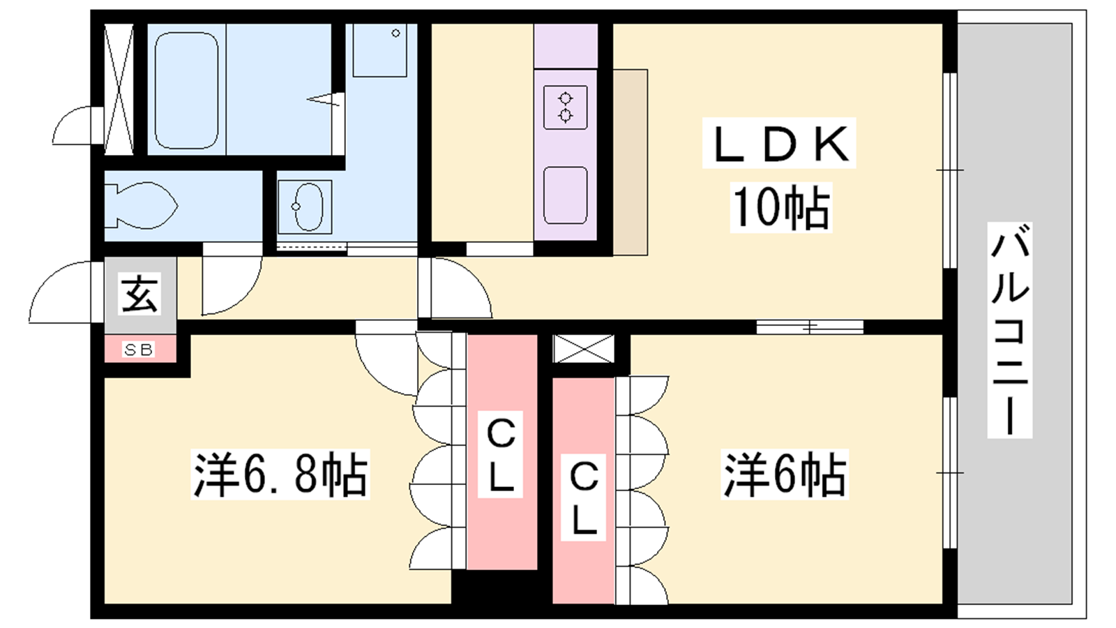 - LDK10帖、洋室6.8帖、洋室6帖