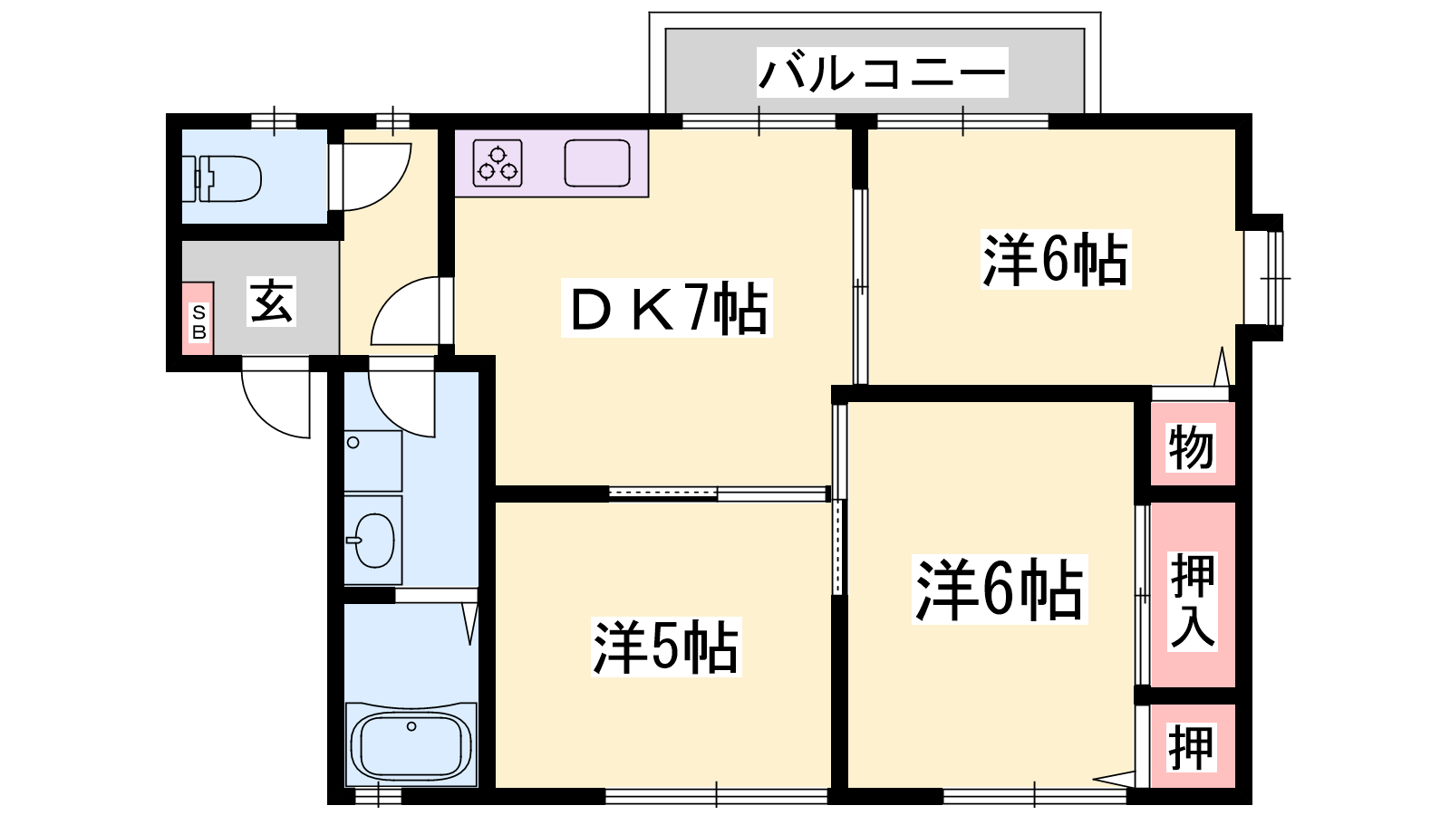 - DK7帖、洋室6帖、洋室6帖、洋室5帖