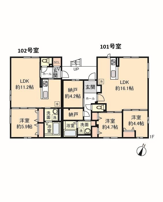 - LDK16.1帖、洋室4.7帖、洋室4.4帖、S4.2帖