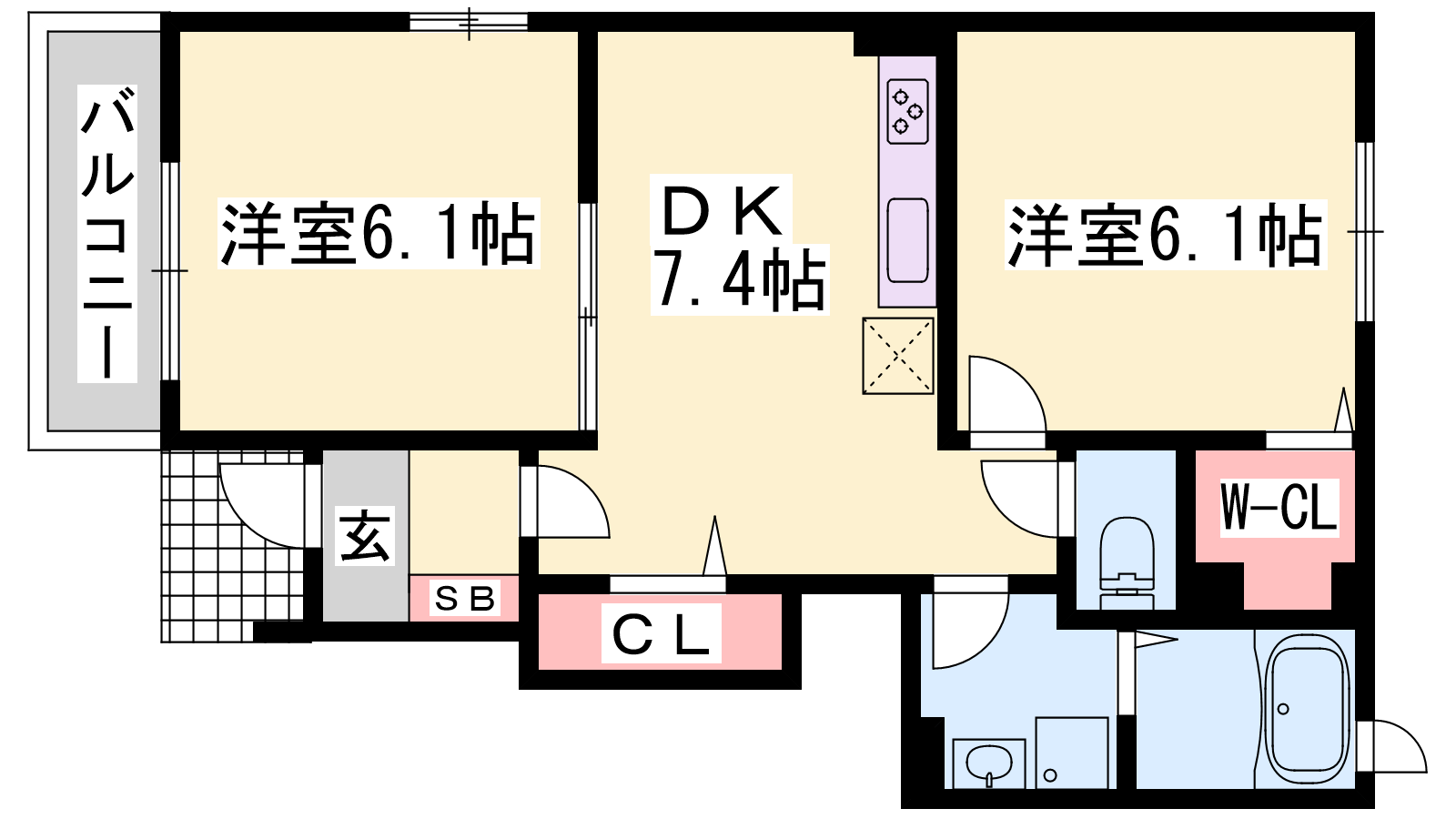 - DK7.4帖、洋室6.1帖、洋室6.1帖