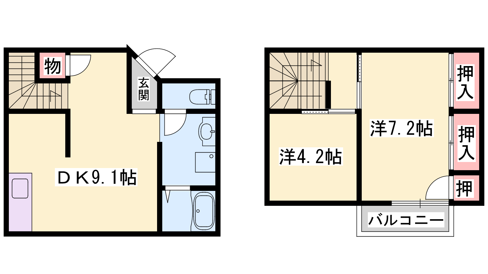 - DK9.1帖、洋室7.2帖、洋室4.2帖
