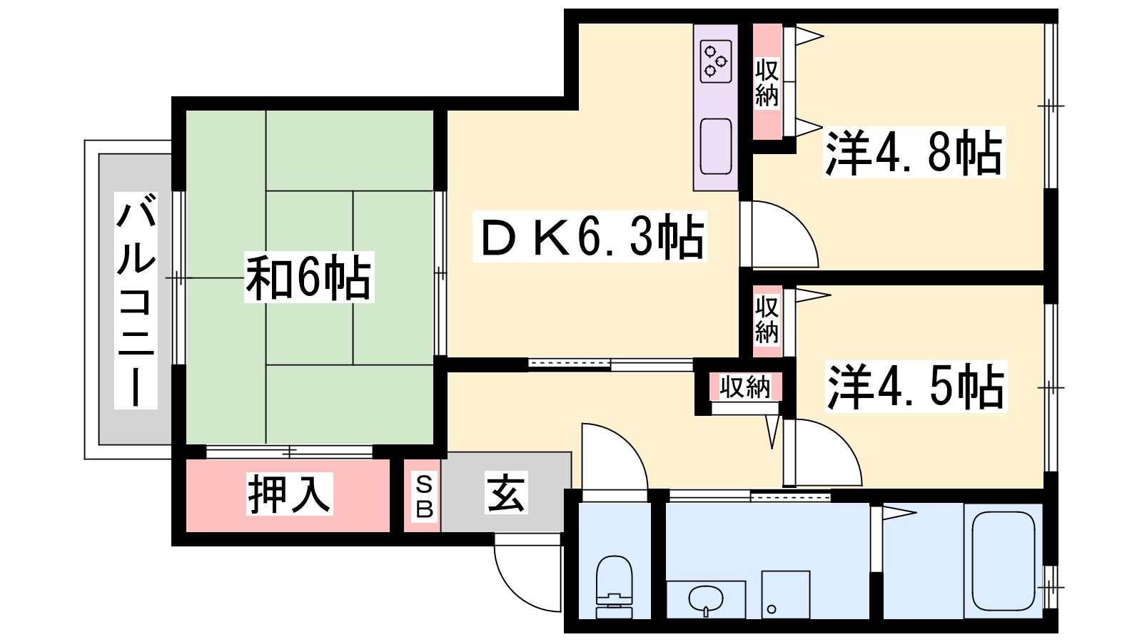 - DK6.3帖、洋室6.7帖、洋室4.8帖、洋室4.5帖