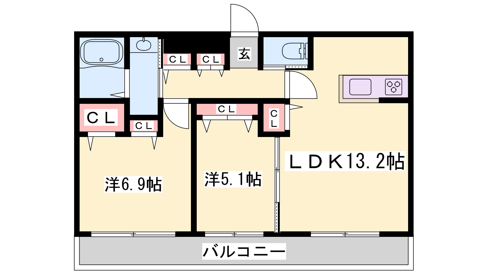 - LDK13.2帖、洋室6.9帖、洋室5.1帖