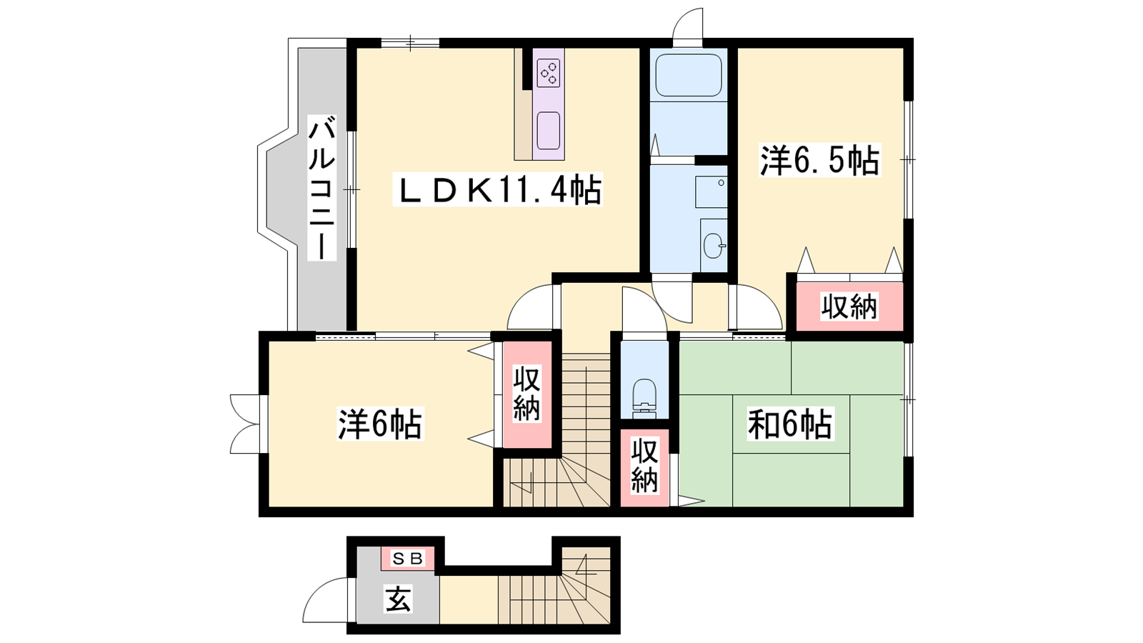 - LDK11.4帖、洋室6.5帖、洋室6帖、和室6帖