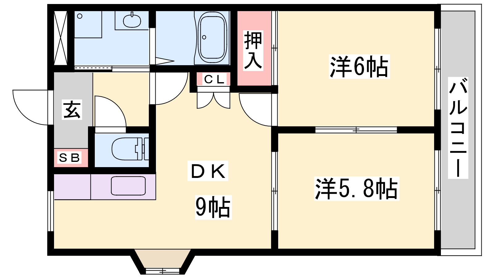 - DK9帖、洋室6帖、洋室5.8帖