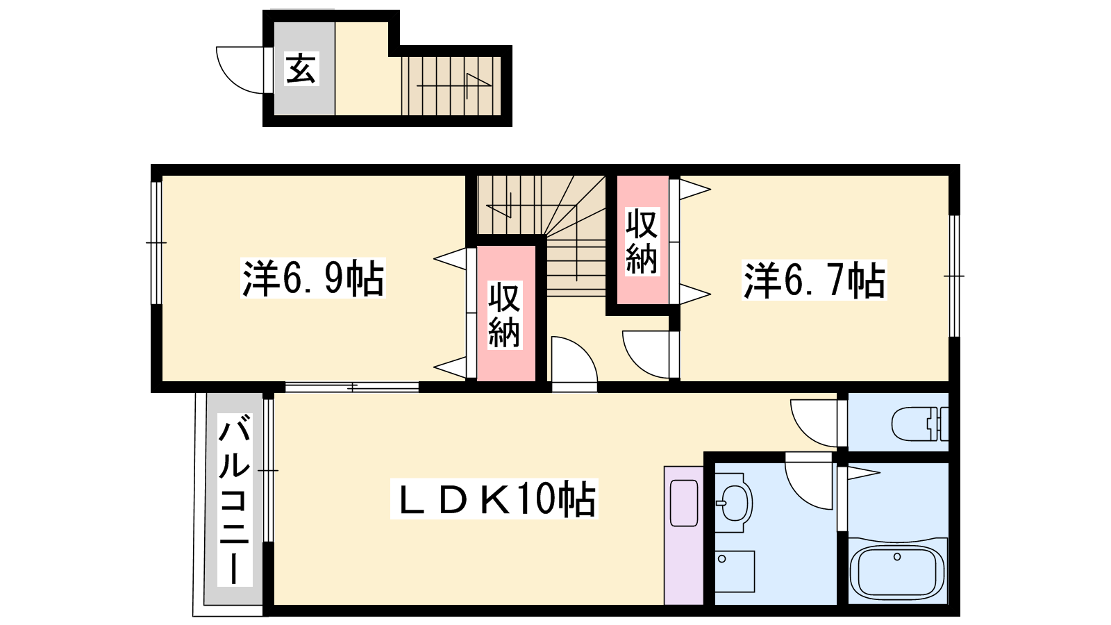 - LDK10帖、洋室6.7帖、洋室6.9帖