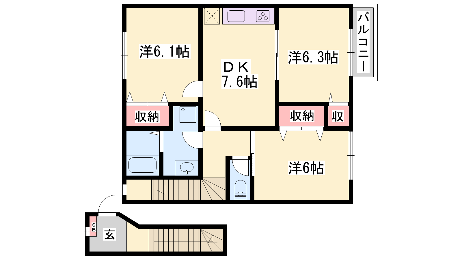 - DK7.6帖、洋室6.3帖、洋室6.1帖、洋室6帖