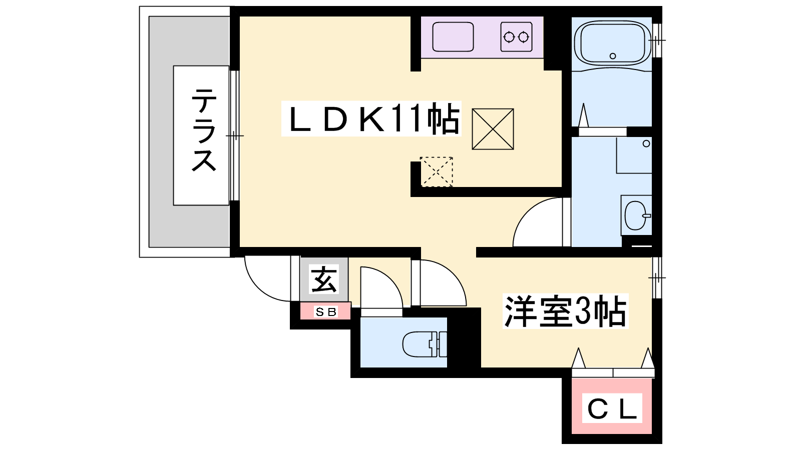 - LDK11帖、洋室3帖
