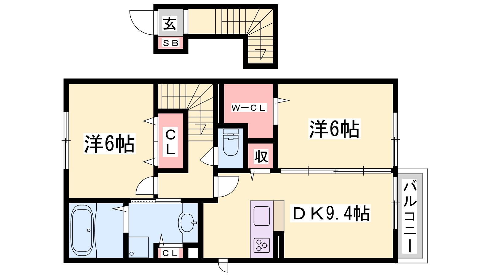 - DK9.4帖、洋室6帖、洋室6帖