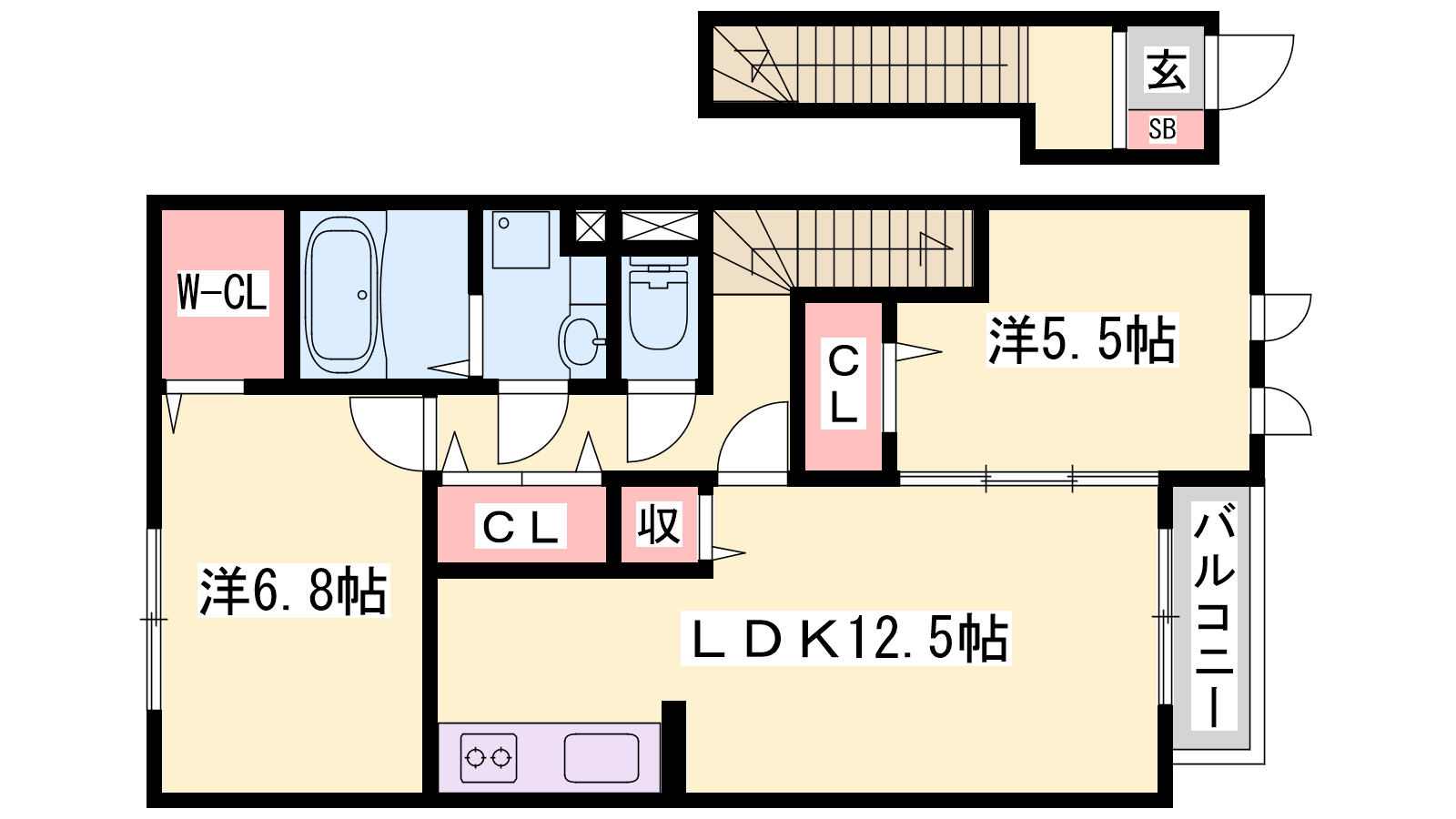 - LDK12.5帖、洋室6.8帖、洋室5.5帖