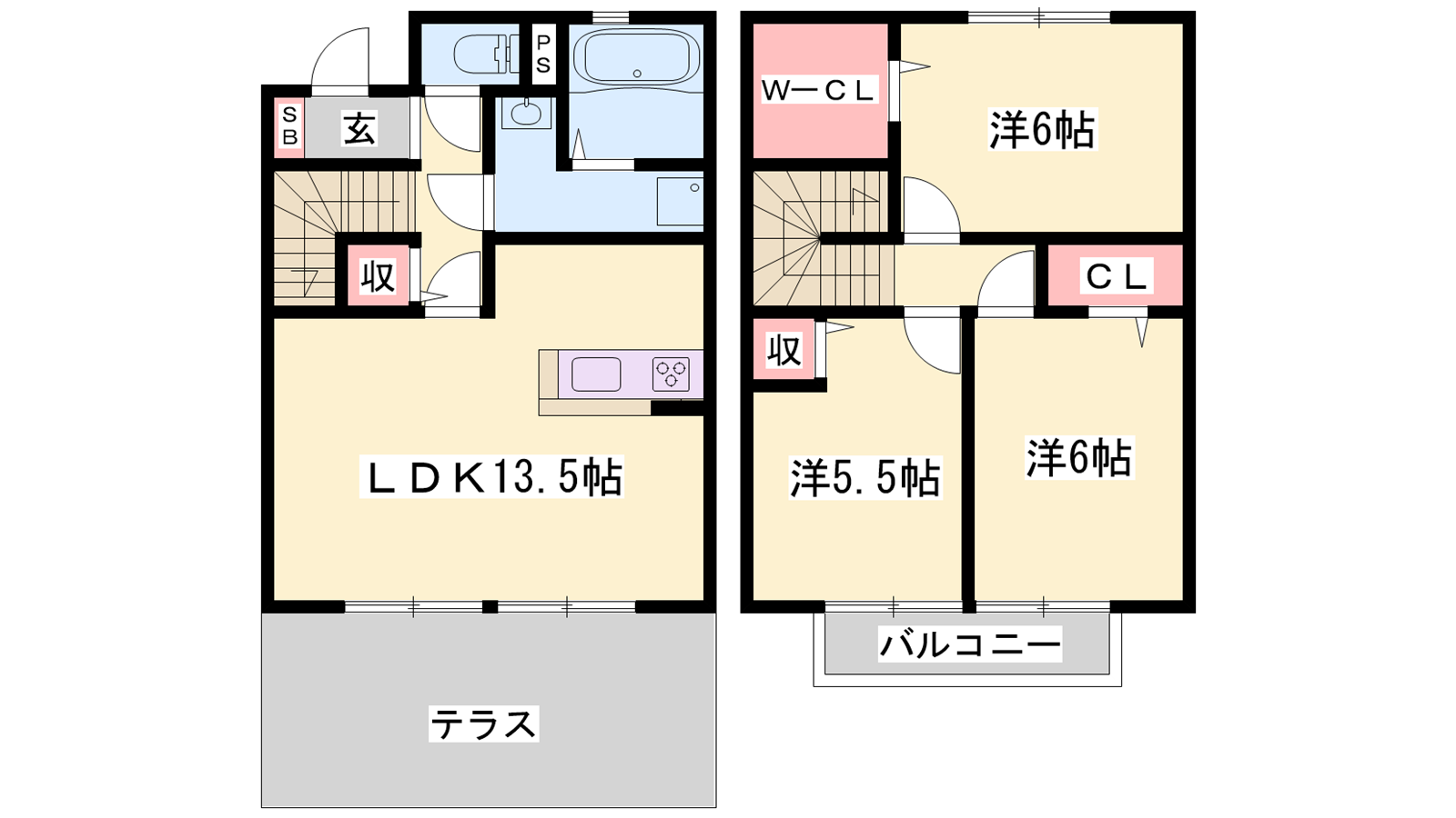 - LDK13.5帖、洋室6帖、洋室6帖、洋室5.5帖