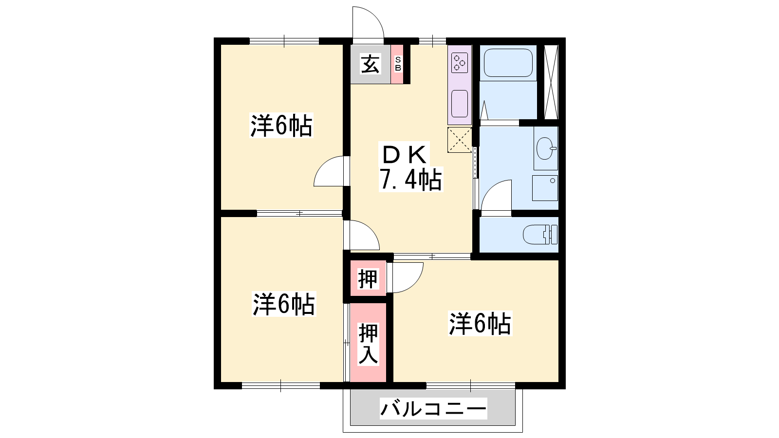 - DK7.4帖、和室6帖、洋室6帖、洋室6帖