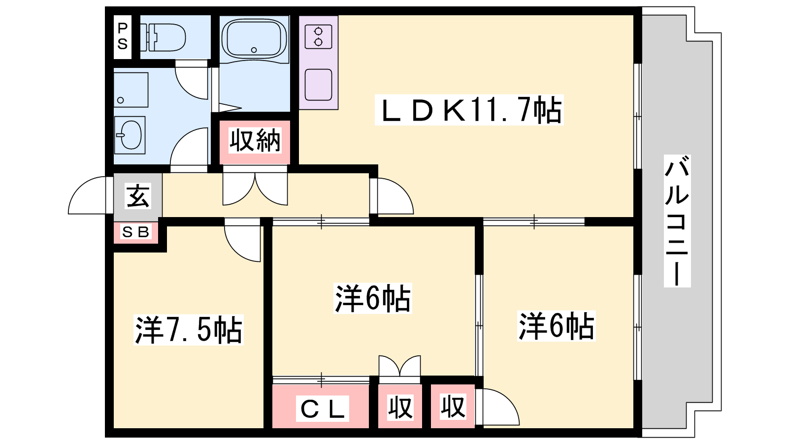 - LDK11.7帖、洋室7.5帖、洋室6帖、洋室6帖
