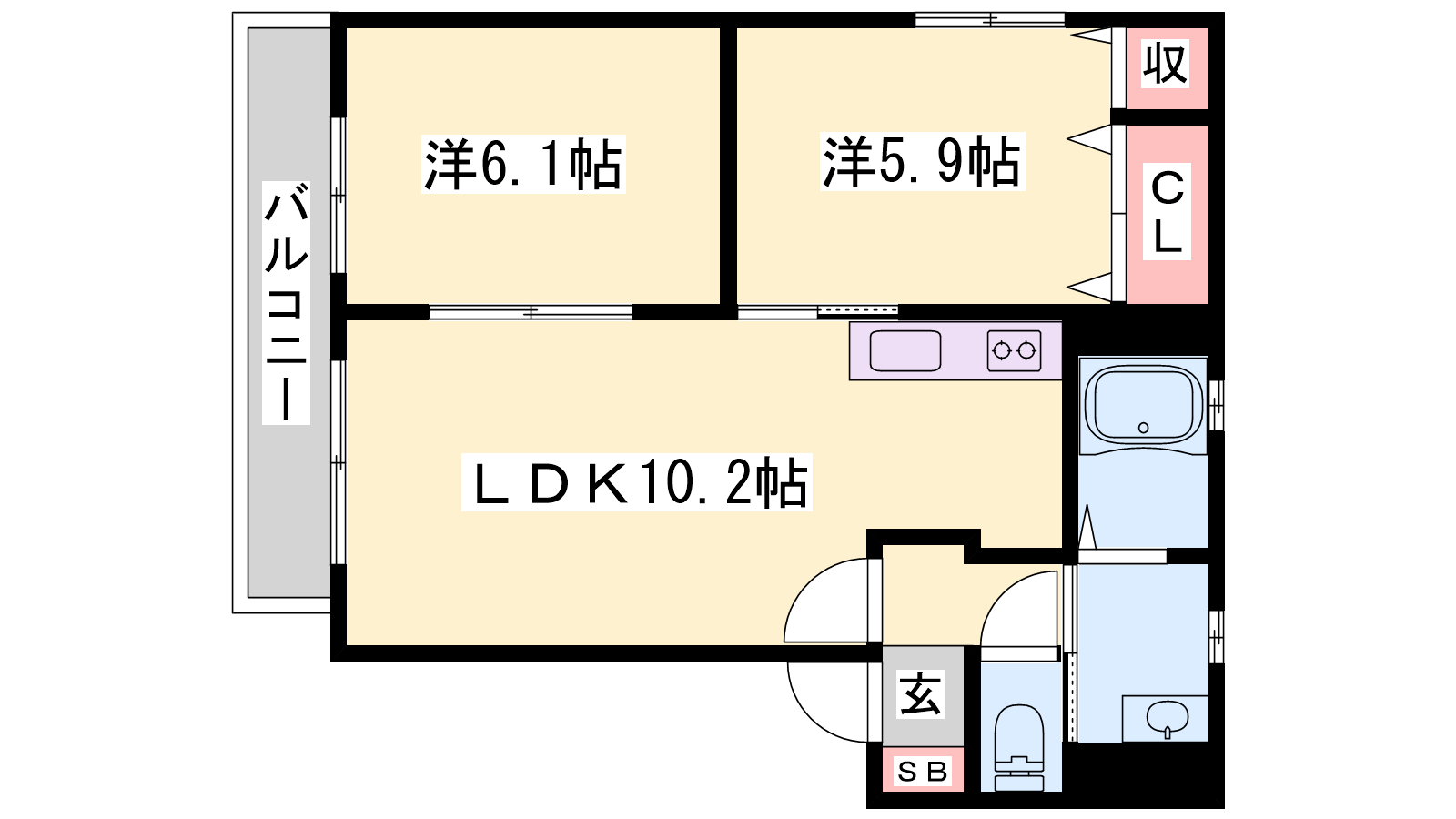 - LDK10.2帖、洋室6.1帖、洋室5.9帖