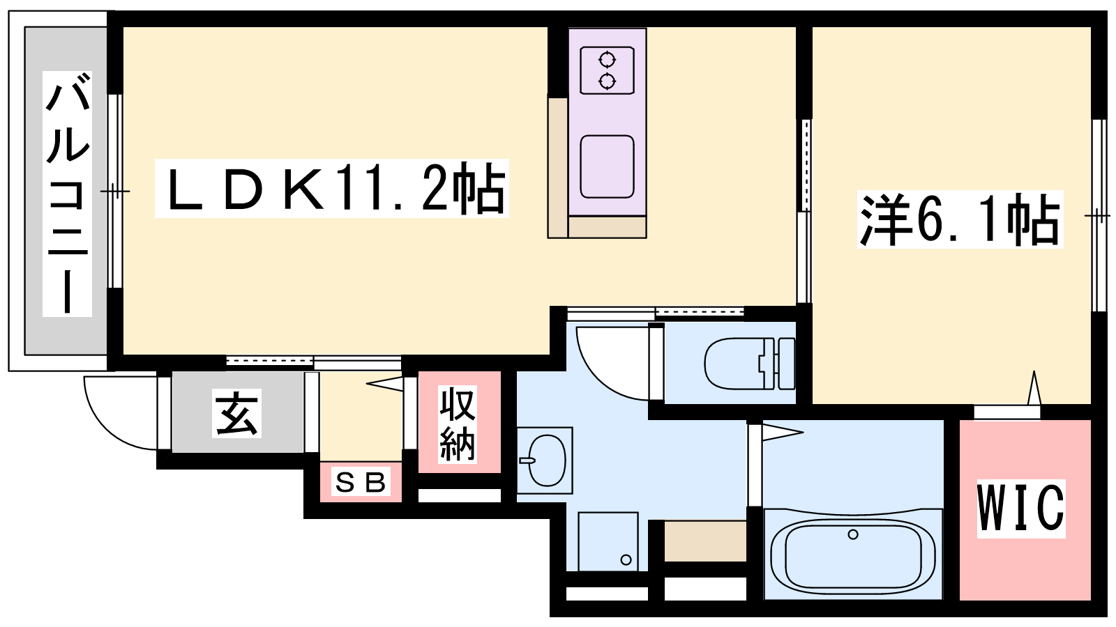 - LDK11.2帖、洋室6.1帖