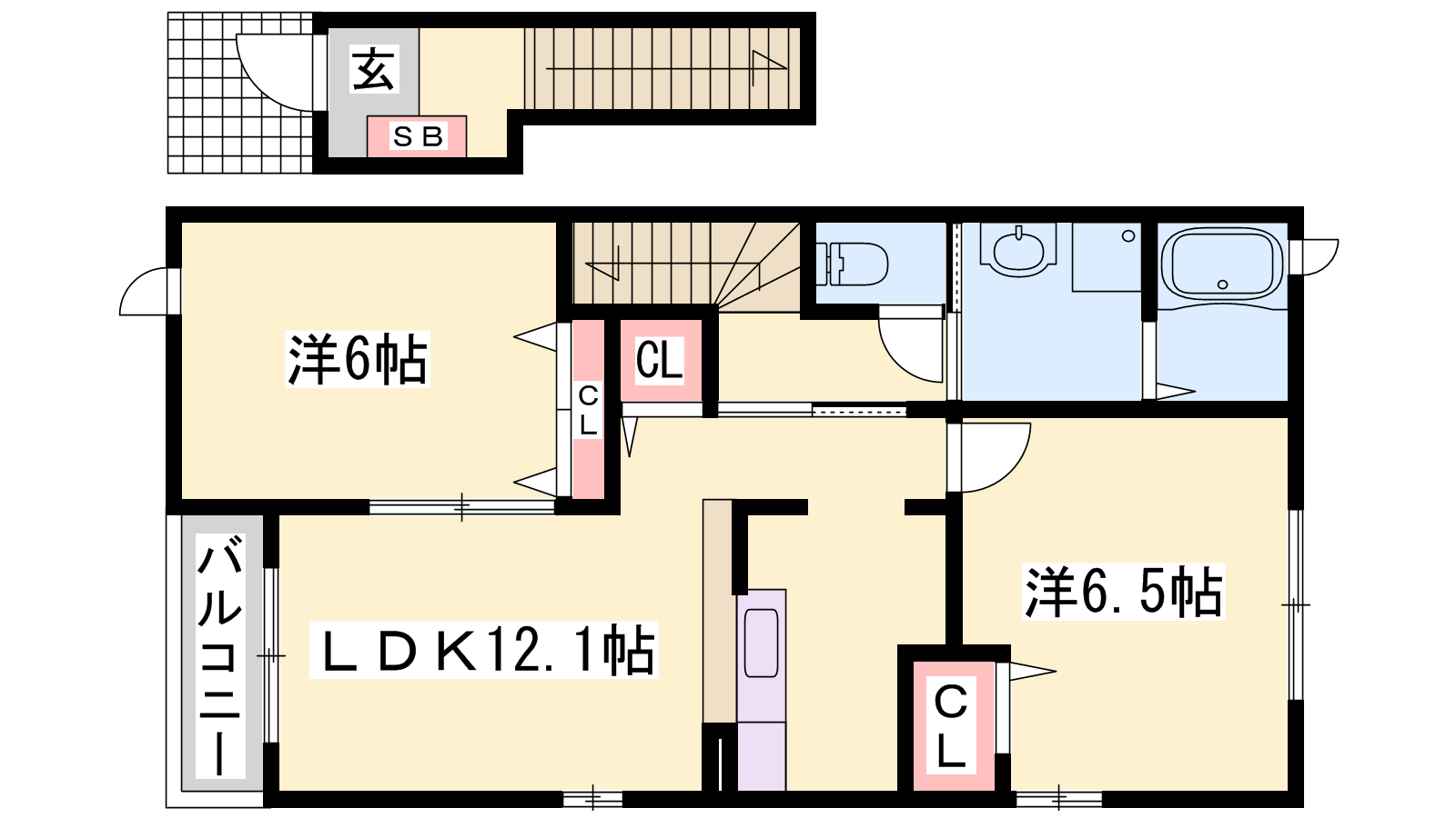 - LDK12.1帖、洋室6.5帖、洋室6帖